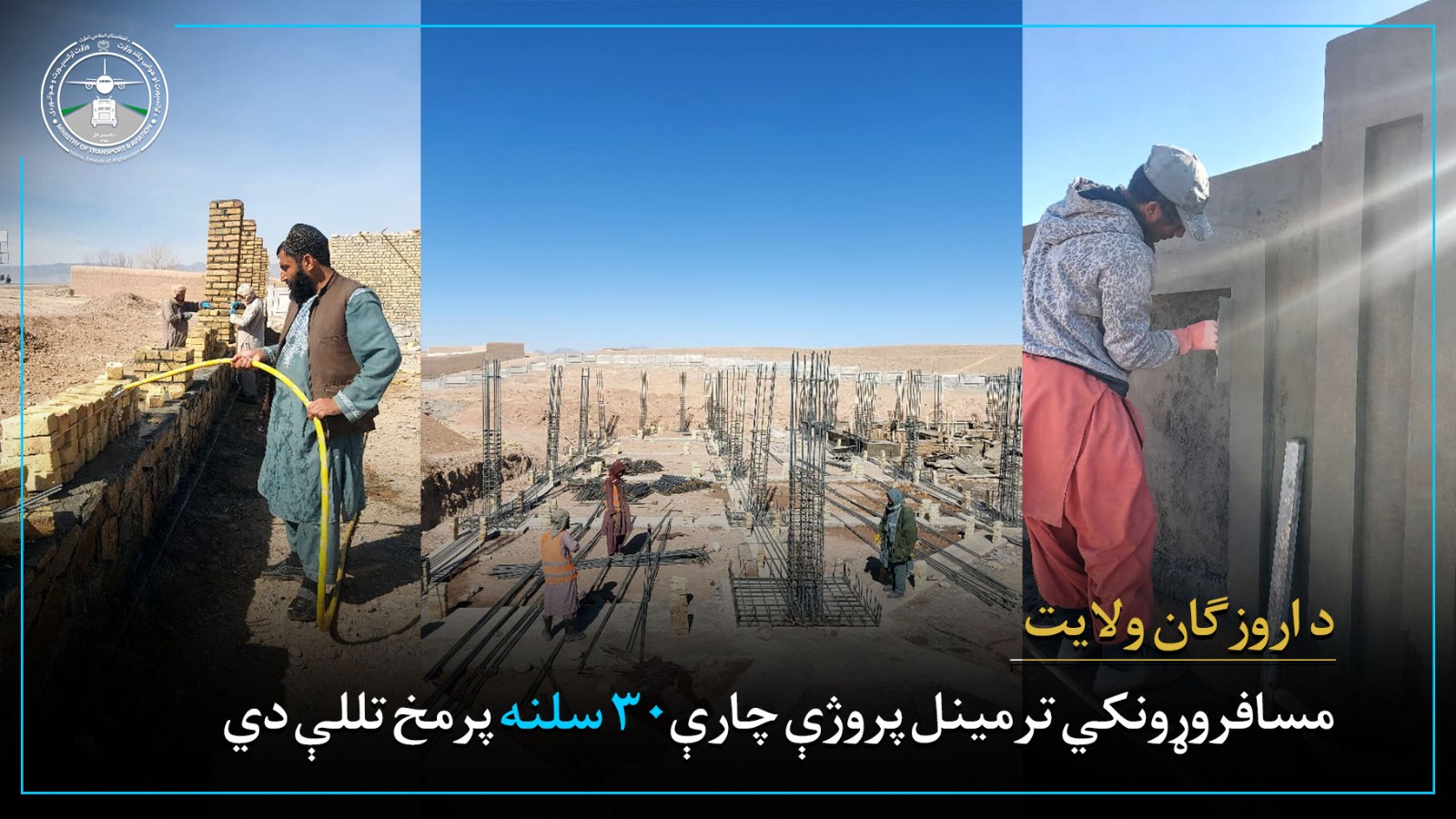 د اروزگان ولایت مسافر وړونکي ترمینل پروژې چارې ۳۰ سلنه پر مخ تللې دي